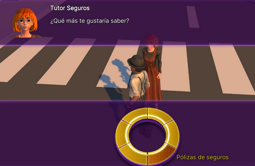 - El avatar del estudiante navega por el mundo 3D.